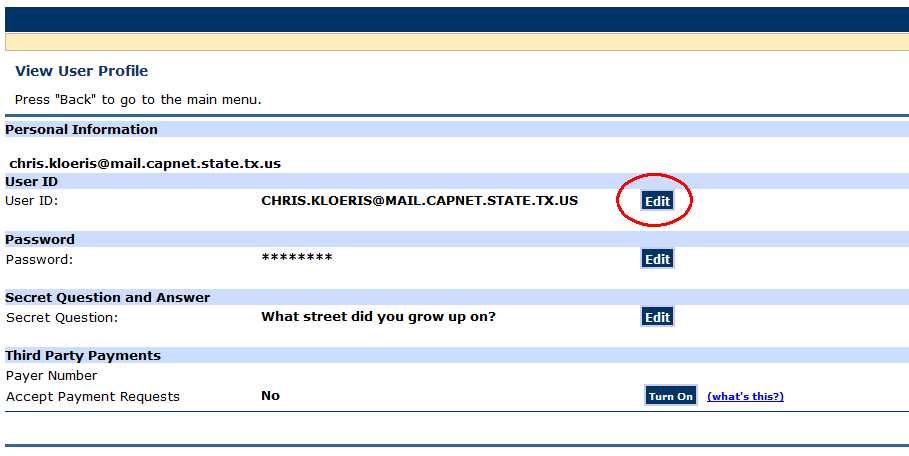 3. Select the “Edit” button for the “User ID” and follow instructions.